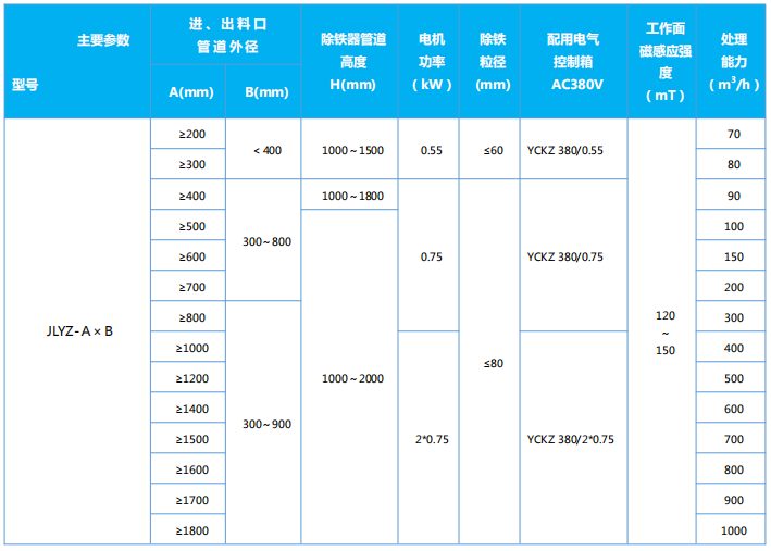 注:可根據(jù)用戶需要,定制各種特殊型號、規(guī)格的除鐵器