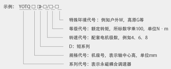 調(diào)速器產(chǎn)品型號(hào)由系列代號(hào)、規(guī)格代號(hào)、等級(jí)代號(hào)、特殊環(huán)境代號(hào)組成