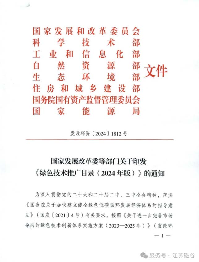 【喜報(bào)】我司繞組式永磁耦合調(diào)速技術(shù)入選國家發(fā)改委、科技部、工信部等八部委《綠色技術(shù)推廣目錄(2024年版)》